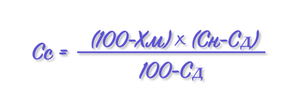 Сс – % зменшення ваги зерна (при зниженні його сміттєвої домішки)